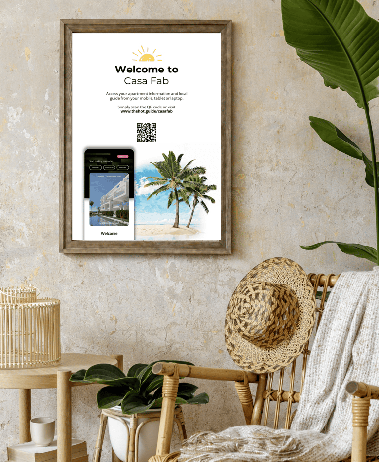 Share your guide with guests using a simple web link or a custom QR code. Whether it’s via message, email, or printed welcome sheet, access is instant and hassle-free.